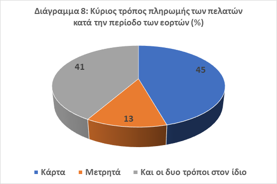 8. Η ψηφιακή ωριμότητα, η οποία επιταχύνθηκε εξαιτίας και της υγειονομικής κρίσης του κορωνοϊού, έχει μεταβάλει τον τρόπο πληρωμής των καταναλωτών καθώς μόλις στο 13% των επιχειρήσεων οι συναλλαγές πραγματοποιήθηκαν κυρίως με μετρητά (Διάγραμμα 8).