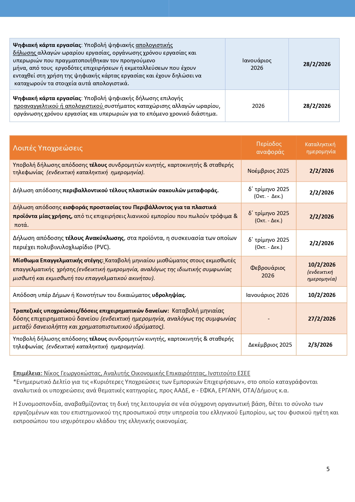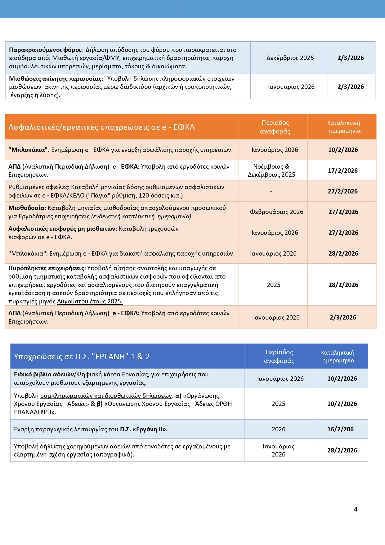 Κυριότερες υποχρεώσεις Εμπορικών επιχειρήσεων Φεβρουάριος 2026 (2/2/2026 έως και 2/3/2026)
