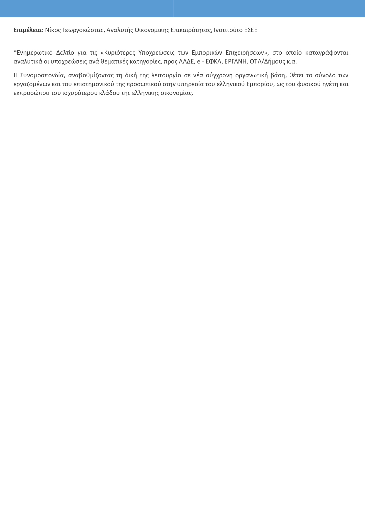 Στο παρόν Ενημερωτικό Δελτίο για τις Κυριότερες Υποχρεώσεις των Εμπορικών Επιχειρήσεων τον μήνα Μάιο, καταγράφονται αναλυτικά, ανά θεματικές κατηγορίες, οι υποχρεώσεις προς ΑΑΔΕ και e-ΕΦΚΑ, ΕΡΓΑΝΗ, ΟΤΑ/Δήμους κ.ά. Επιπλέον, αναφέρονται οι καταληκτικές ημερομηνίες διευθέτησής τους.