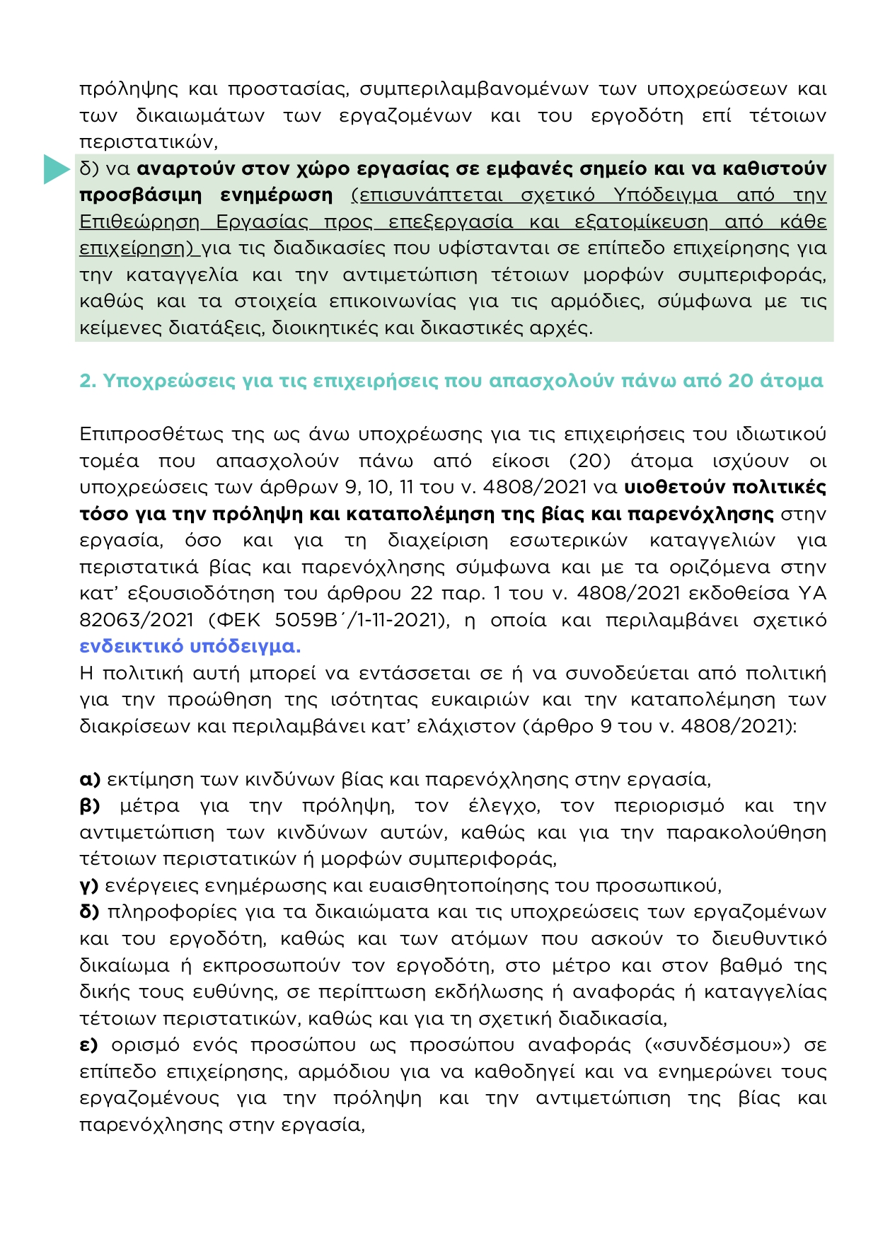 Ενημερωτικό σημείωμα για την πρόληψη και αντιμετώπιση της βίας και παρενόχλησης στην εργασία