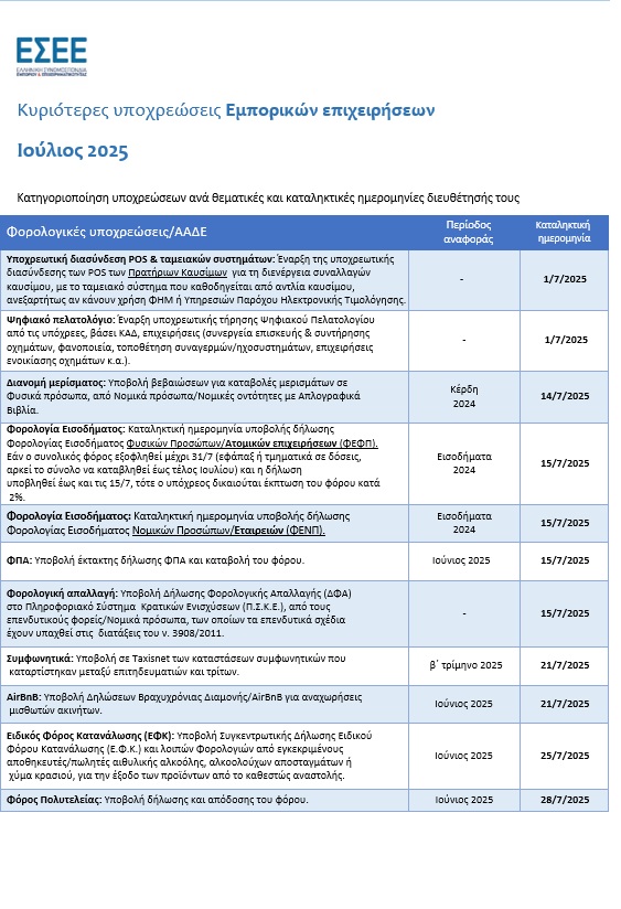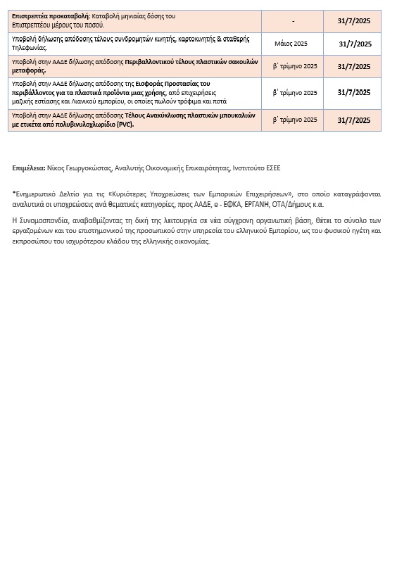 Τέλος, σύμφωνα με την παρ. 1 άρθρου 16 ν. 4177/2013, τα καταστήματα μπορούν να ανοίξουν προαιρετικά την πρώτη Κυριακή τωντακτικών θερινών εκπτώσεων, ήτοι στις 20 Ιουλίου 2025. Υπενθυμίζουμε