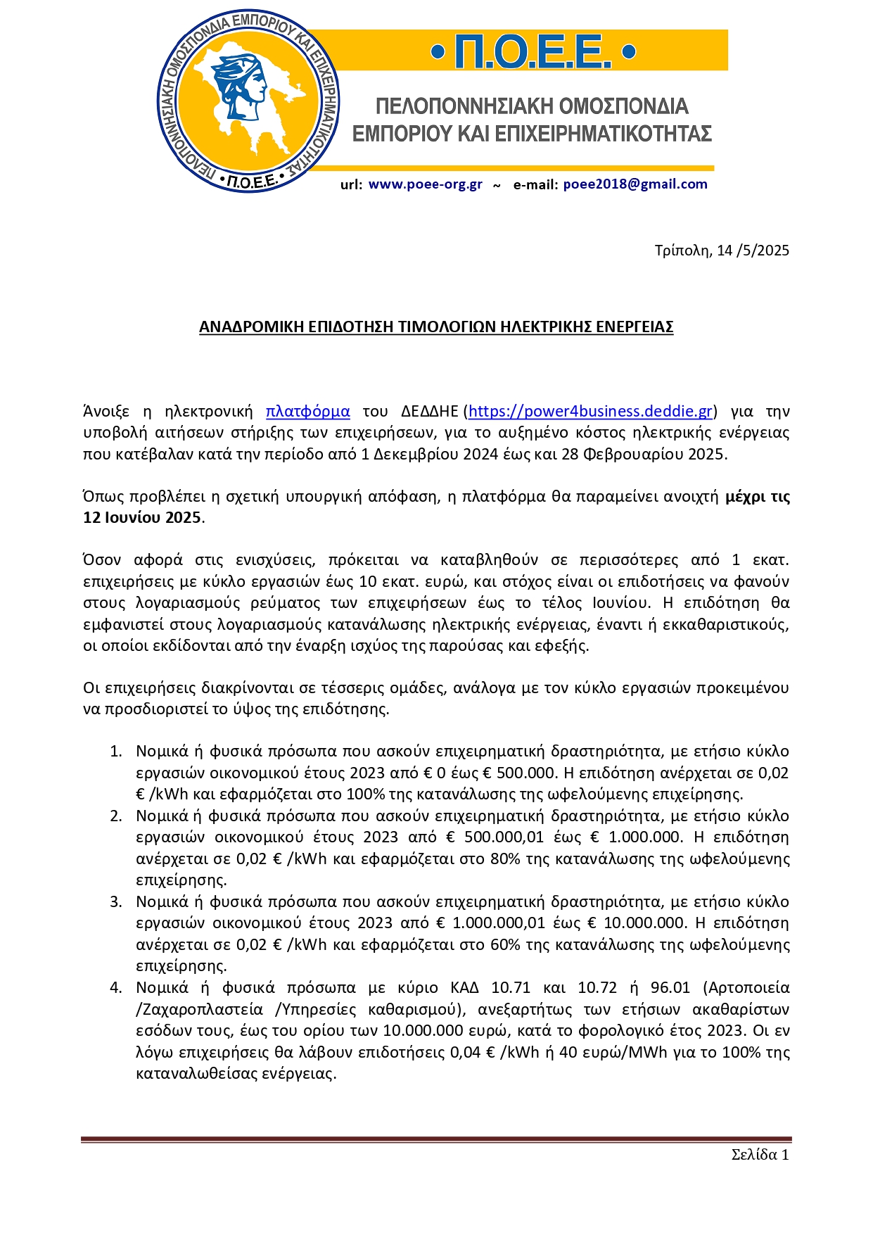 Ευελπιστούμε στη θετική σας ανταπόκριση και παραμένουμε στη διάθεσή σας για οποιαδήποτε διευκρίνιση ή συνεργασία προς την κατεύθυνση αυτή, παρακαλώντας παράλληλα να δείξετε την απαραίτητη ευαισθησία και να ανταποκριθείτε άμεσα στις ανάγκες της τοπικής κοινωνίας και αγοράς.»