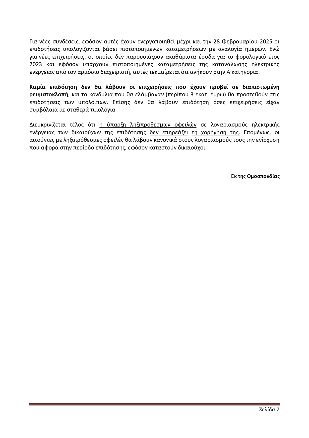 - Οι εν λόγω οικονομικές ελαφρύνσεις έχουν ήδη τεθεί σε εφαρμογή από τις 21 Ιανουαρίου 2025 με τον Ν. 5167/2024.